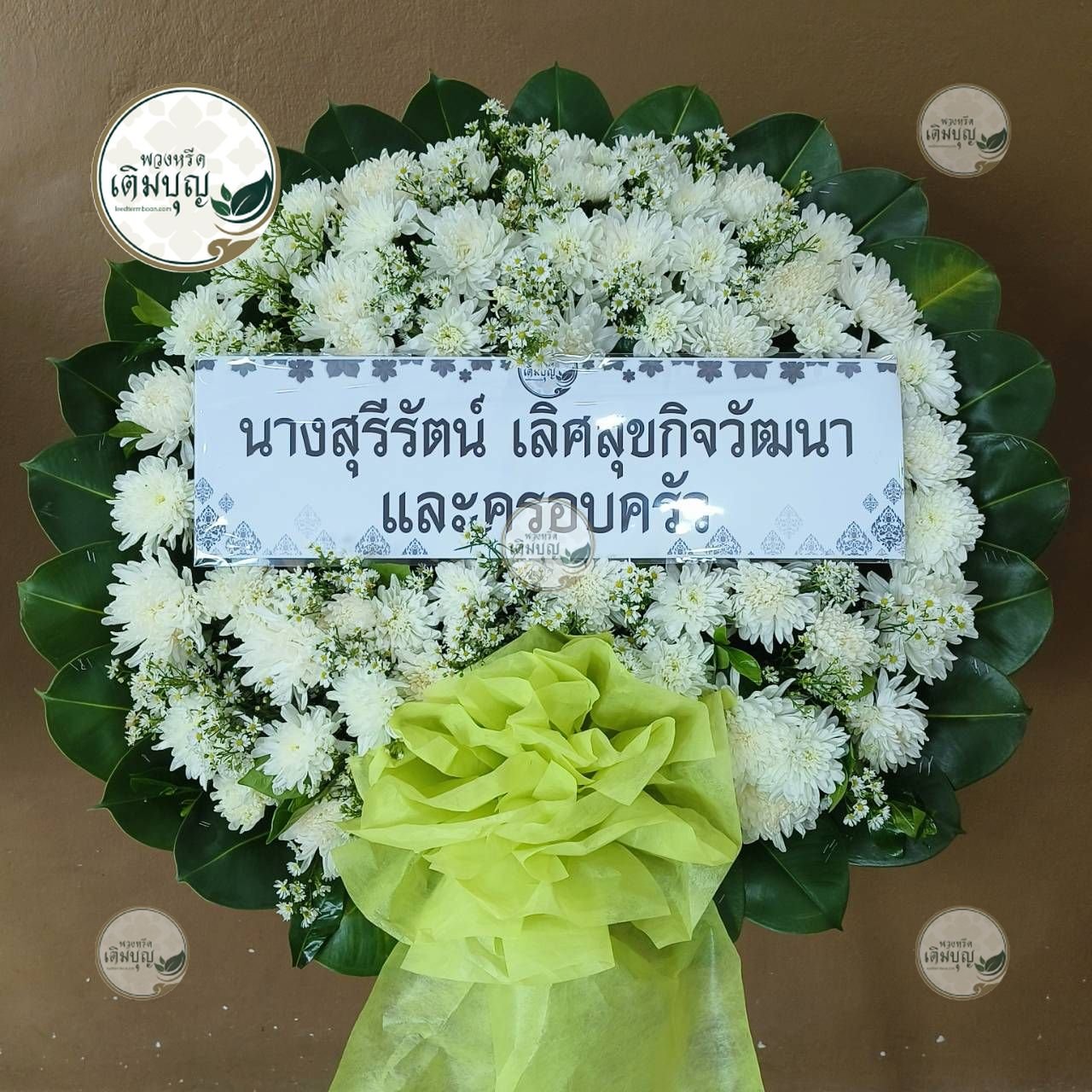 A: สามารถใช้พวงหรีดได้ทุกประเภทครับ แต่ลูกค้านิยมเลือก พวงหรีดดอกไม้สด ที่มีการจัดตกแต่งอย่างปราณีต เพื่อให้สมเกียรติกับสถานที่และผู้วายชนม์ครับ
