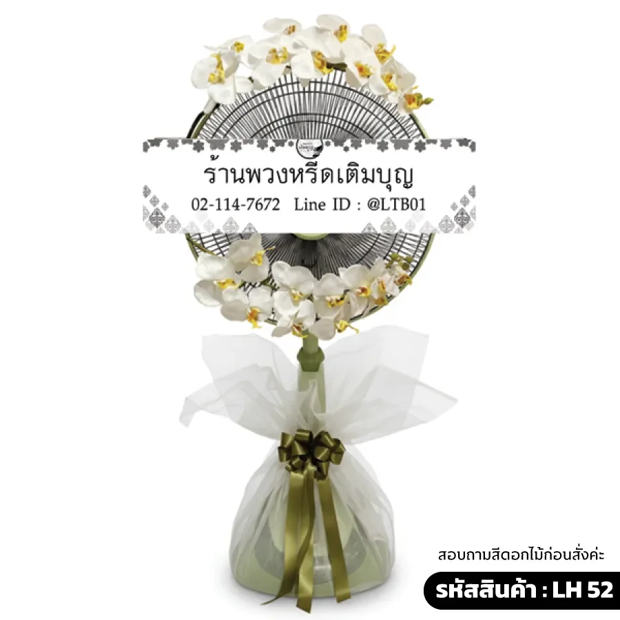 ลูกค้าสามารถเลือกโทนสีของดอกไม้ได้ แต่ไม่สามารถเลือกสีของพัดลมได้ เนื่องจากพัดลมคละสีมาแต่ละล็อตไม่เหมือนกันในแต่ละสาขา แต่มั่นใจได้ว่าทางร้านจะเลือกใช้สีพัดลมโทนสีสุภาพตามที่โรงงานส่งมาให้ลูกค้าช่องทางการสั่งซื้อสินค้าโทร : 021147672LINE ID : @ltb01