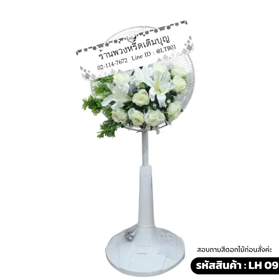 ลูกค้าสามารถเลือกโทนสีของดอกไม้ได้ แต่ไม่สามารถเลือกสีของพัดลมได้ เนื่องจากพัดลมคละสีมาแต่ละล็อตไม่เหมือนกันในแต่ละสาขา แต่มั่นใจได้ว่าทางร้านจะเลือกใช้สีพัดลมโทนสีสุภาพตามที่โรงงานส่งมาให้ลูกค้า