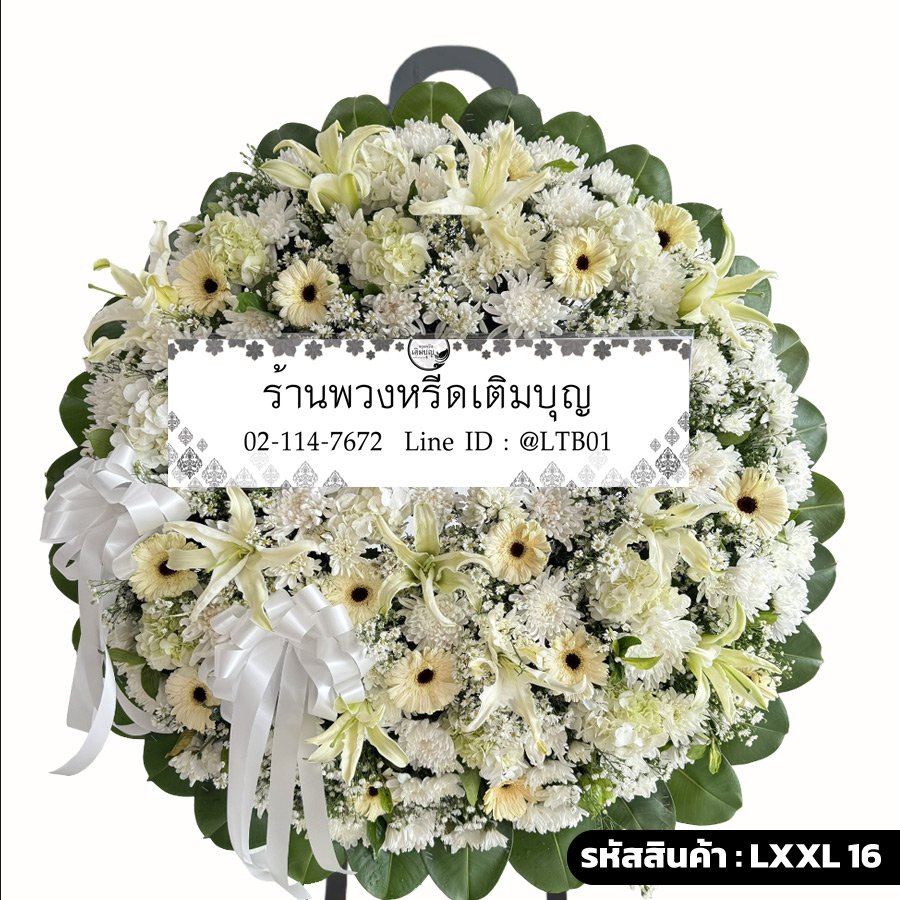 พวงหรีดดอกไม้สด "ศุภจันทร์" (รหัส LXXL16)