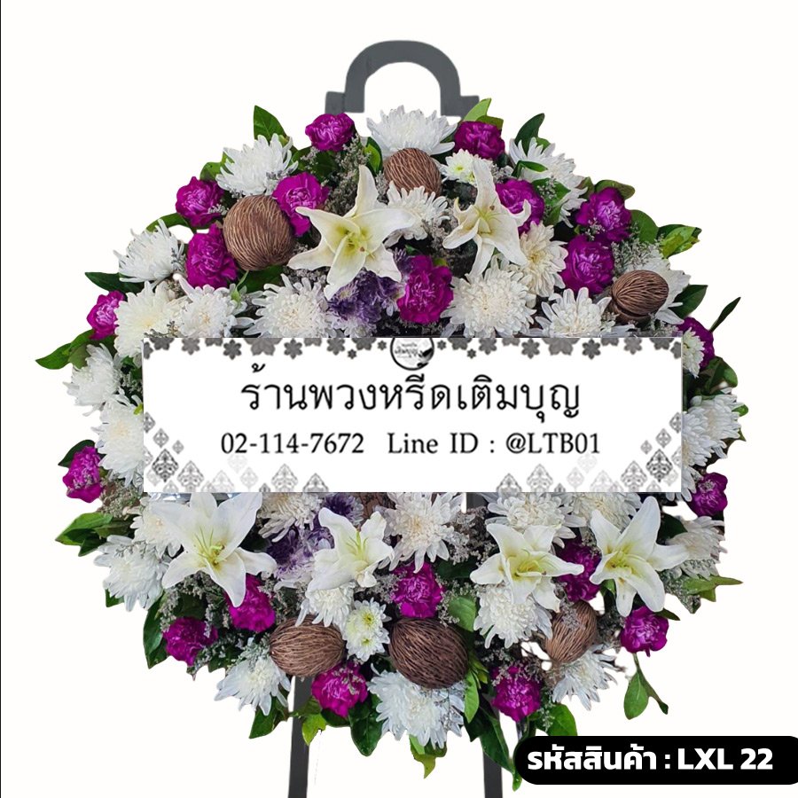 พวงหรีดดอกไม้สด "ม่วงมณี" (รหัส LXL22)