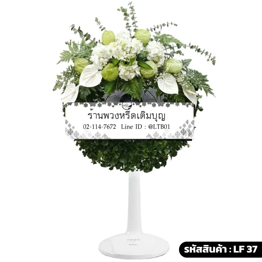 พวงหรีดพัดลมดอกไม้สด "แสงธรรม" (รหัส LF37)