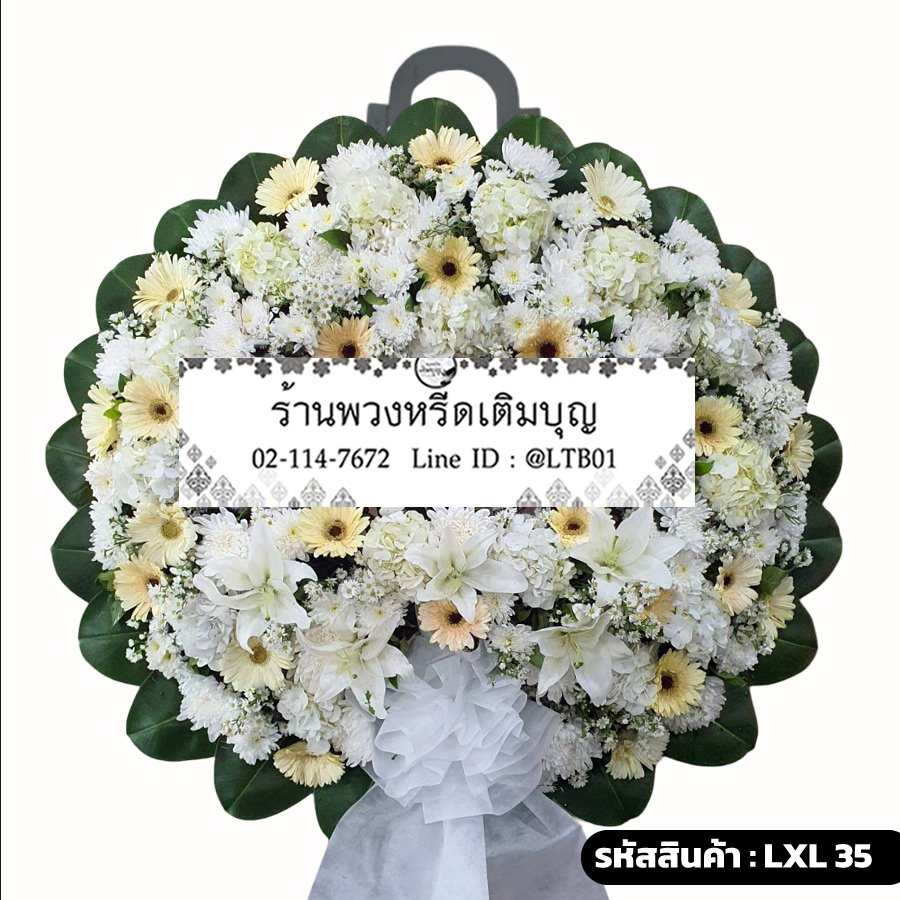 พวงหรีดดอกไม้สด "จันทร์นวล" (รหัส LXL35)