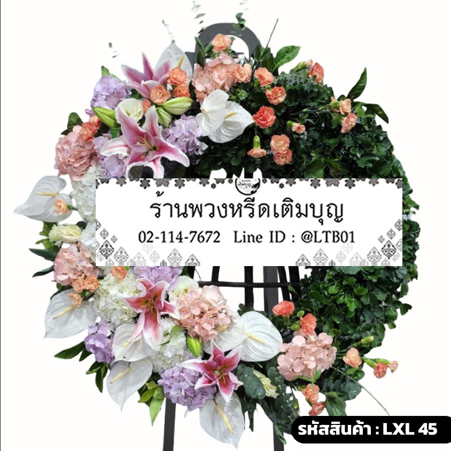 พวงหรีดดอกไม้สด "เพ็ญพิมล" (รหัส LXL45)