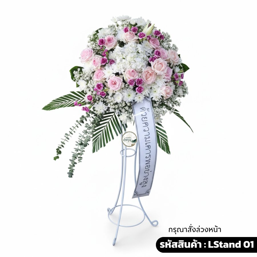 พวงหรีดสแตนด์ดอกไม้สด "อาลัยภิรมย์" (รหัส LStand01)