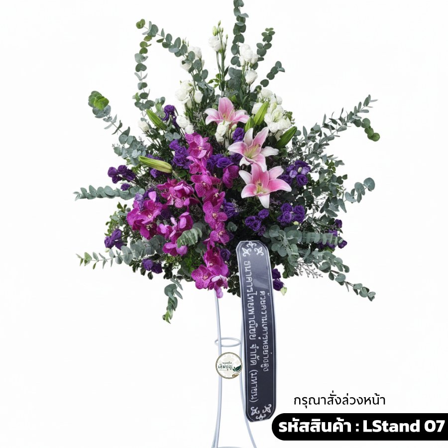 พวงหรีดสแตนด์ดอกไม้สด "ม่วงพิมาน" (รหัส LStand07)