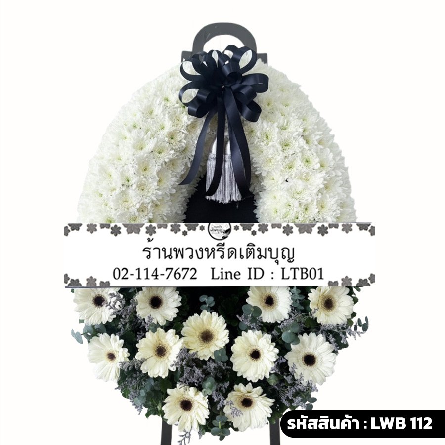 พวงหรีดกระดาน "อาลัยขาว" (รหัส LWB112)